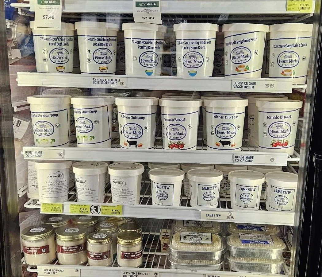 I was the graphic designer for the Co-op from 2024-2025, drawing, printing, and assembling all their signage including packaging, brochures, sticker labels for products, and product signage.